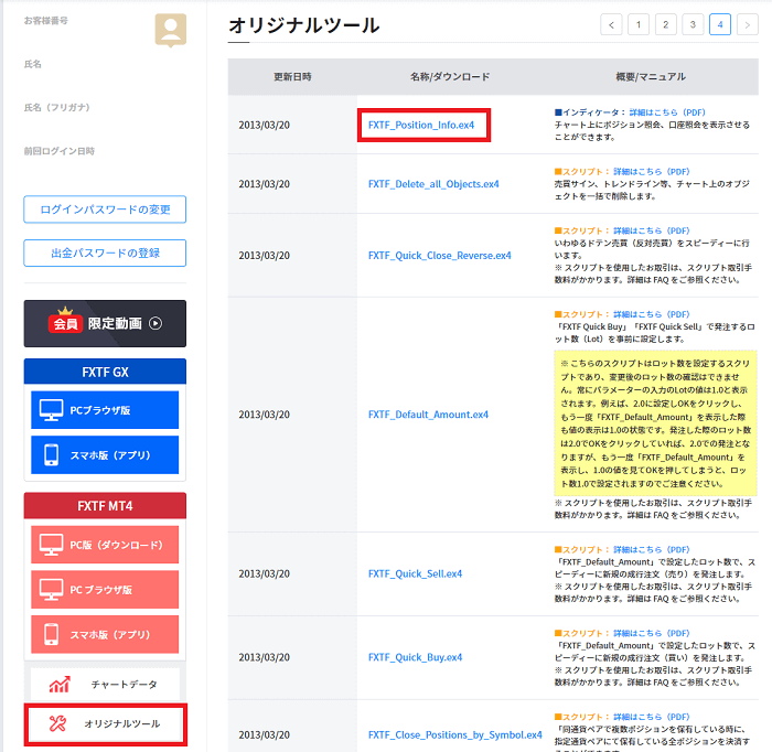 追加したいスクリプト名「○○○.ex4」をクリックしてデスクトップなど分かりやすい場所に保存してください。